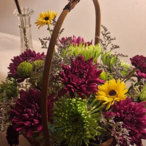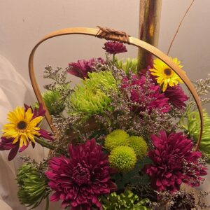 - Flower delivery in Cincinnati. This vibrant floral arrangement, artfully presented in a woven basket with a curved handle, captures the spirit of poetic flower delivery in Cincinnati. Designed for homes and hearts across Clifton, Avondale, Downtown Cincinnati, and Northern Kentucky, the bouquet features a striking trio of blooms: deep purple chrysanthemums for depth and elegance, bright yellow daisies for cheer…